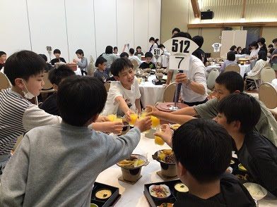 ホテルで泊まることにも大喜びでした。食事の時にジュースで乾杯をしているグループもありました。